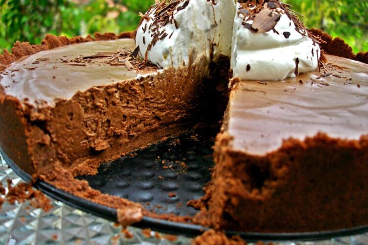 Pour the chocolate mousse in your baked and cool crust and let it chill in fridge at least 4 hours but overnight is best! (for clean cuts).