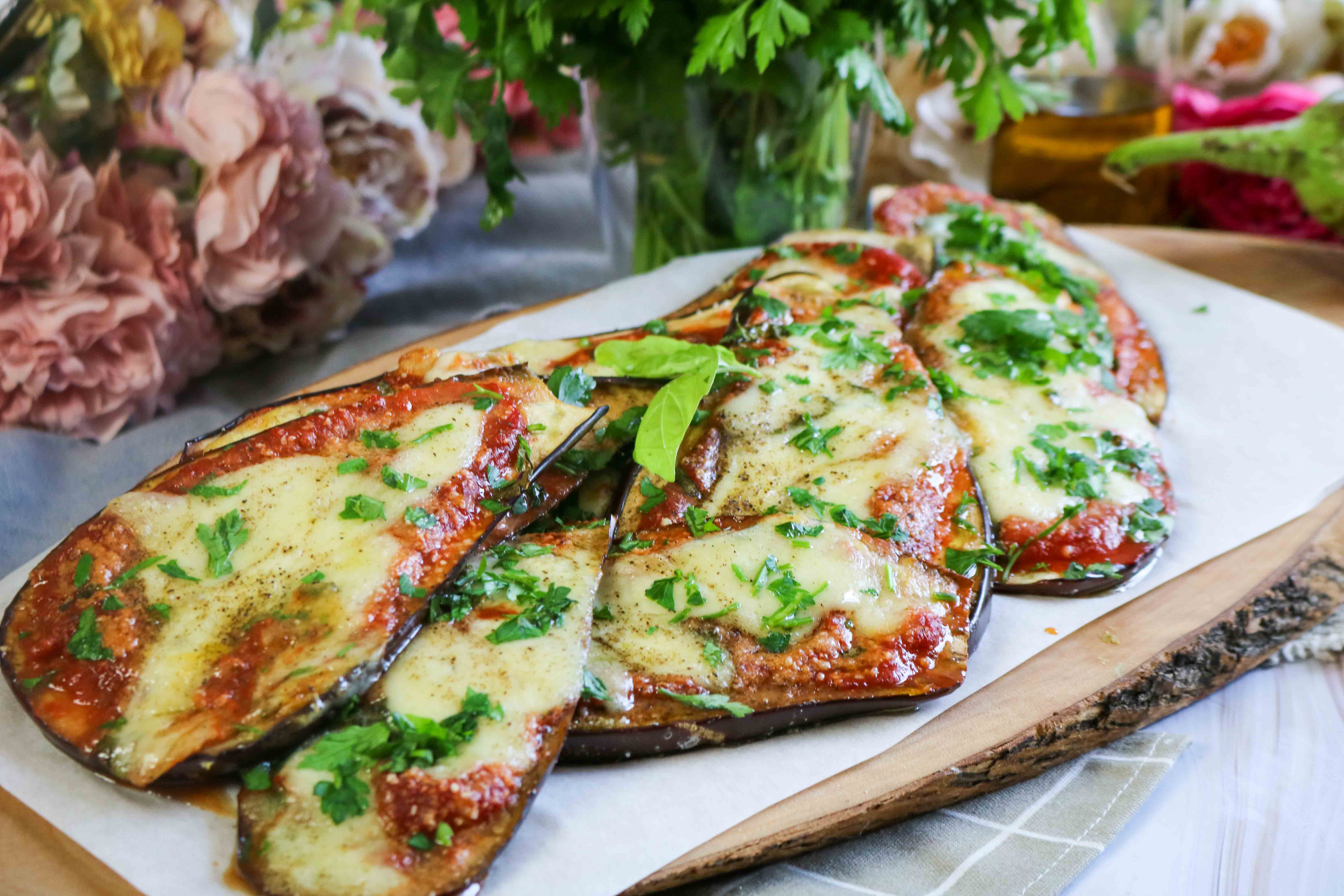Мојата верзија на овој превкусен зеленчук е спој на печен модар домат со босилек, пармезан и моцарела. На овој начин добивам вкусно и богато предјадење, кое воедно може да се претвори и во главно јадење, се во зависност од тоа колку сте гладни.