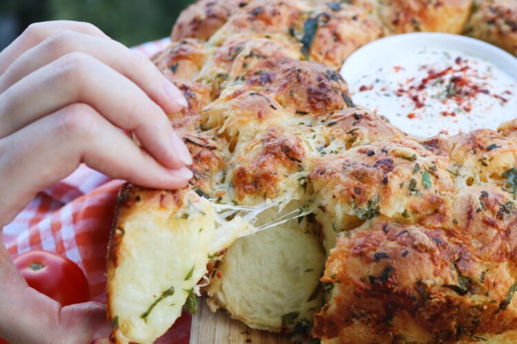 Во вакви ситуации ни треба нешто за замезување, а ова лепче со сос  во средината е токму тоа што се бара. Замислете си само колку е слатко кога ќе повлечете делче од него и насекаде ќе се растегне сочен кашкавал, па потоа ќе го макнете парченцето во сосот од павлака, сирење и буковец. Прсти да излижеш!
