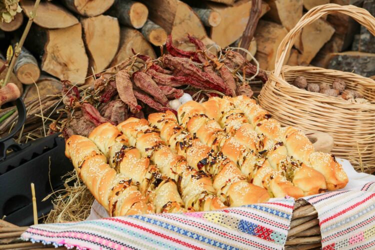 - Во длабок сад замесете тесто од брашното, квасецот, солта, шеќерот, млаката вода, маслото за јадење и оцетот. Оставете тестото да стаса на собна температура околу 60 минути. Поделете го на 3 еднакви делови и од секој дел расукајте правоаголна форма.