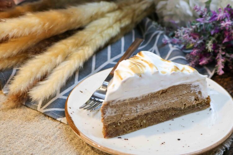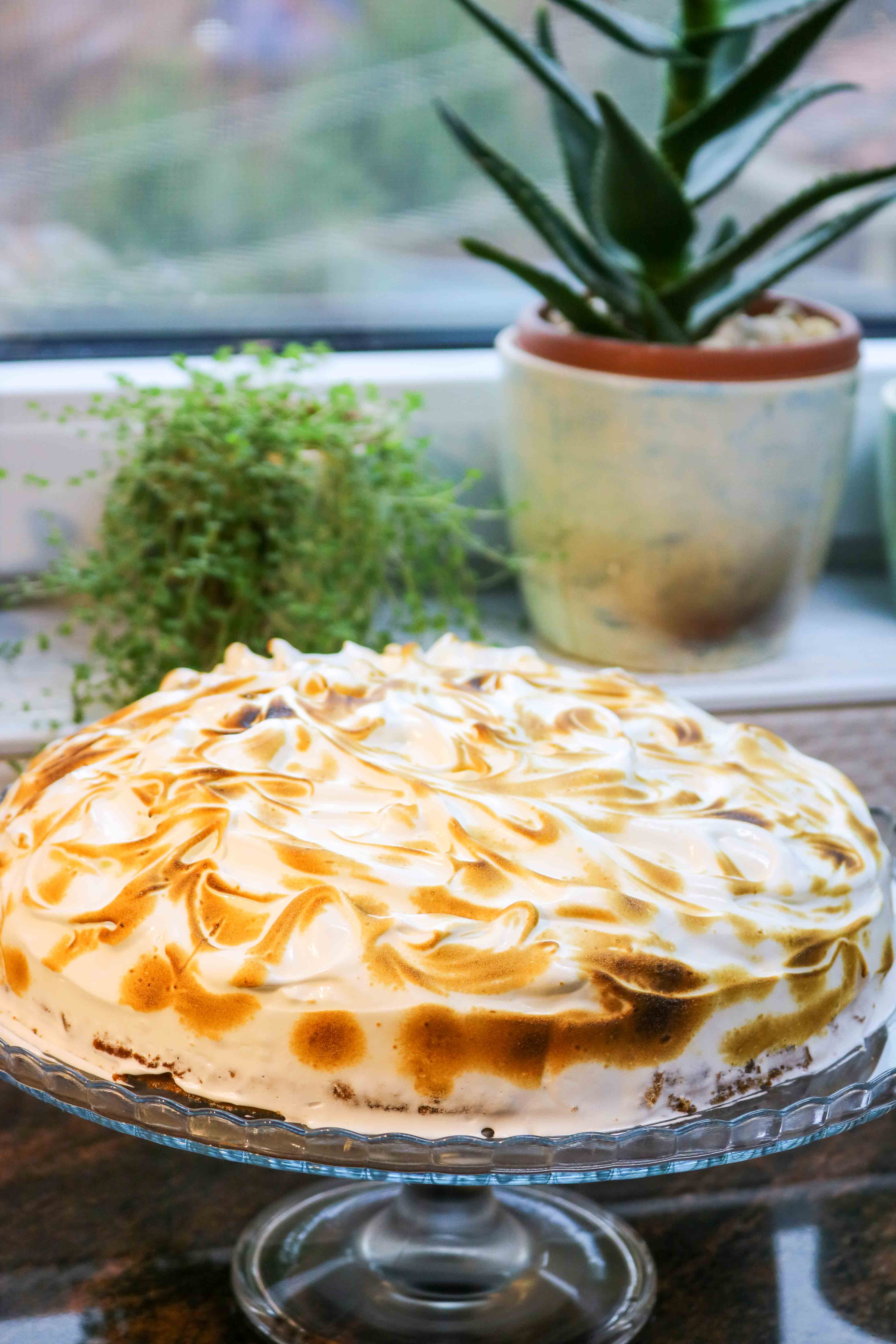 На крај во тенџере на оган на најниската температура ставете ги белките и шеќерот. Матете со миксер додека не добиете мазен, сјаен и цврст шлаг од белки. Со добиената шлаг пена декорирајте ја тортата по вкус. На крај со помош на запалка за торти внимателно поминете врз шлагот додека не го добиете потребниот светло кафен изглед.