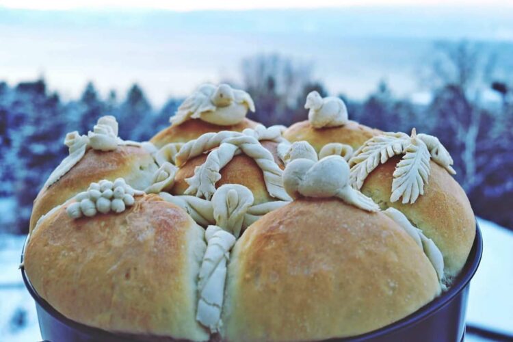 Традиционално погачата ја украсувам со парчиња жито изработени од тесто, кои се прават мошне едноставно, а изгледаат феноменално откако ќе ја испечеме погачата